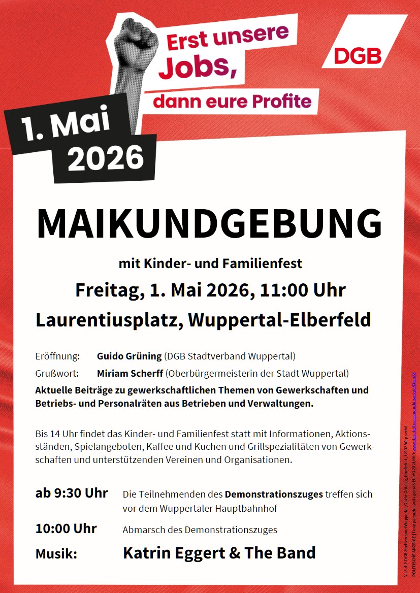 Auch in diesem Jahr beteiligt sich die Wuppertaler Gruppe von Amnesty International am Familienfest des DGB auf dem Laurentius-Platz.Von 11 Uhr bis 14 Uhr findet das Kinder- und Familienfest statt mit Informationen, Aktionsständen, Spielangeboten, Kaffee und Kuchen und Grillspezialitäten von Gewerkschaften und unterstützenden Vereinen und Organisationen.
